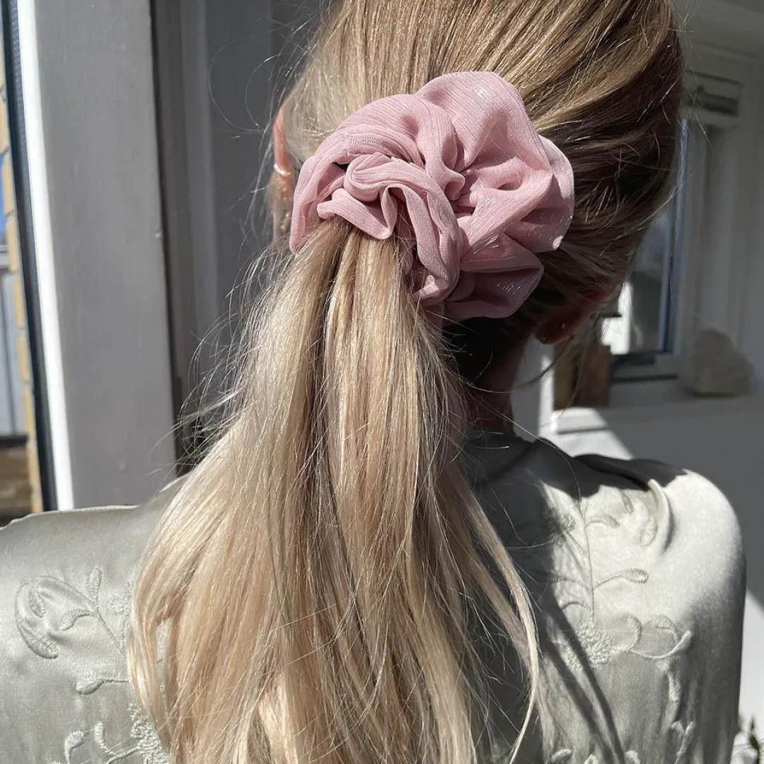 The Ivy scrunchie is a must have in your accessory collection! It’s an oversized scrunchie with a little glitter that creates a puffy look in your hair. Use it in a messy bun or to spice up your ponytail.