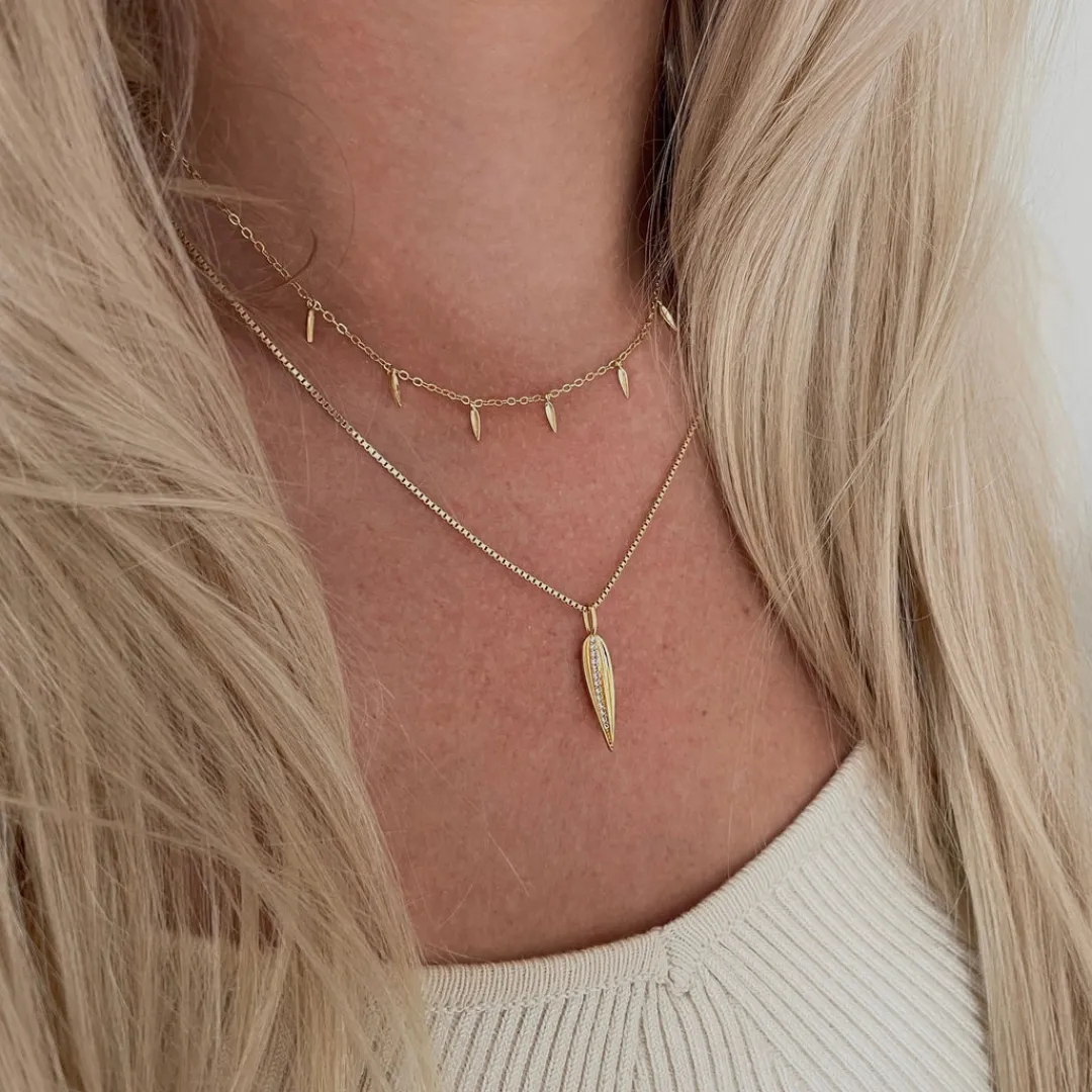 Immerse yourself in the enchanting beauty of nature with our breathtaking Lai Pendant – a beautiful pendant inspired by bamboo. This unique piece pays tribute to the graceful elegance of the bamboo plant and will add a sublime and radiant charm to your necklace collection. Carefully crafted with an eye for detail, the Lai Pendant is shaped like a graceful bamboo leaf. A touch of elegance is added with small cubic zirconias running down the center of the blade. These sparkling stones bring a delicate shine to the pendant, creating a perfect balance between natural beauty and subtle luxury.